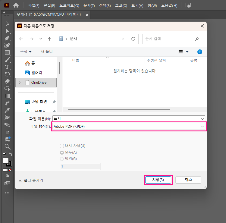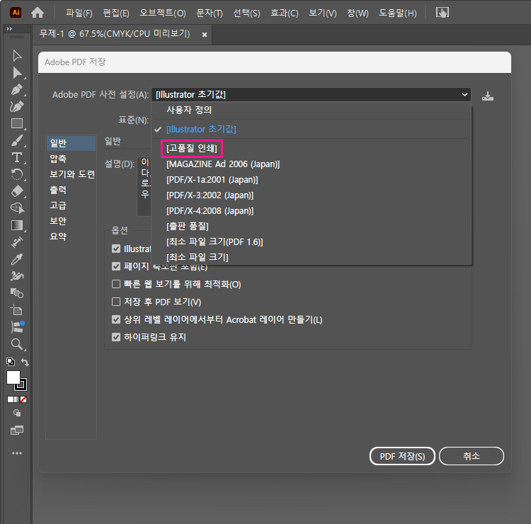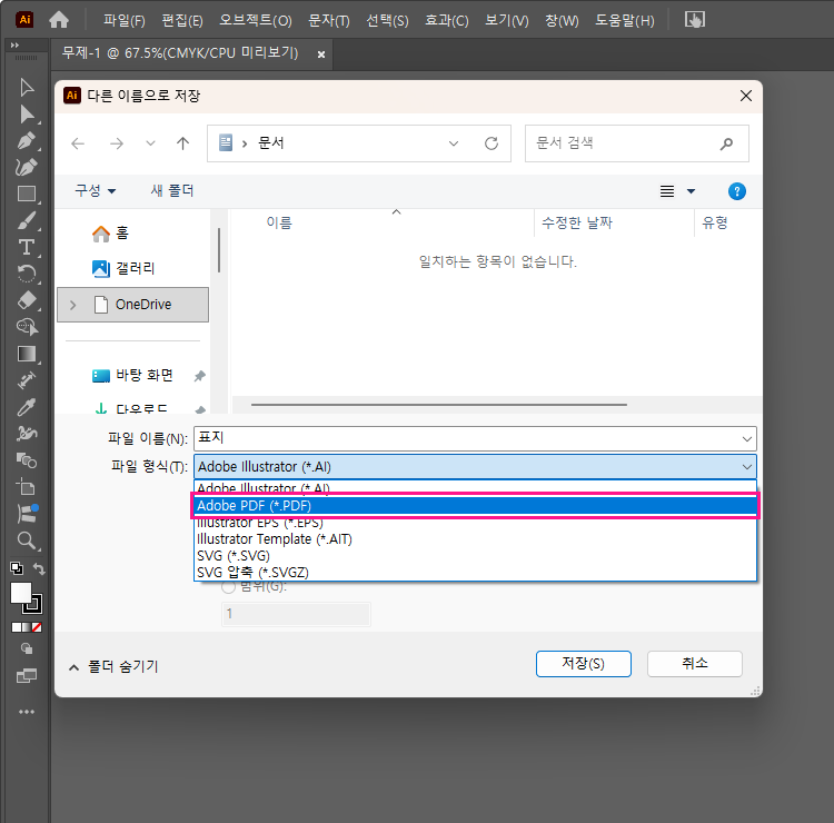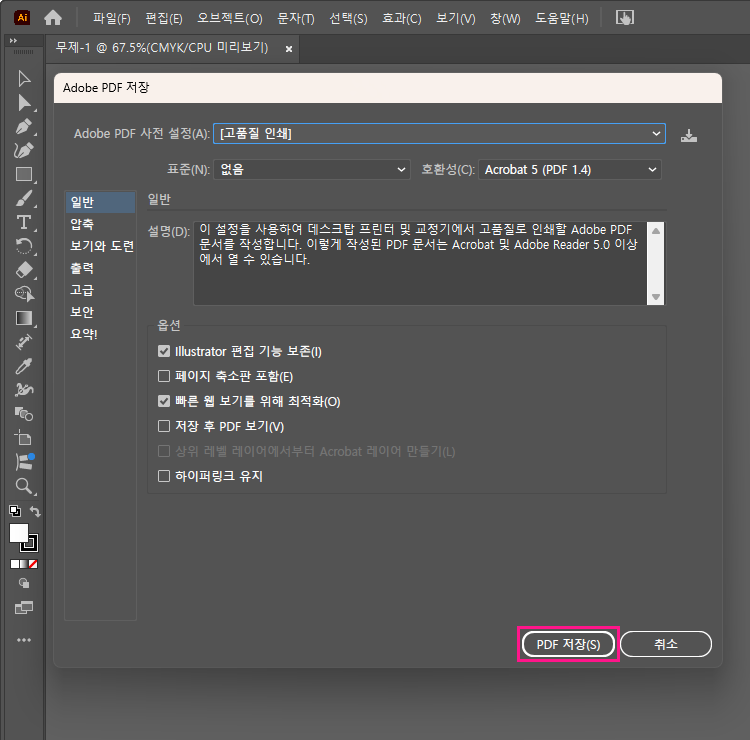 일러스트레이터에서 PDF 만들기