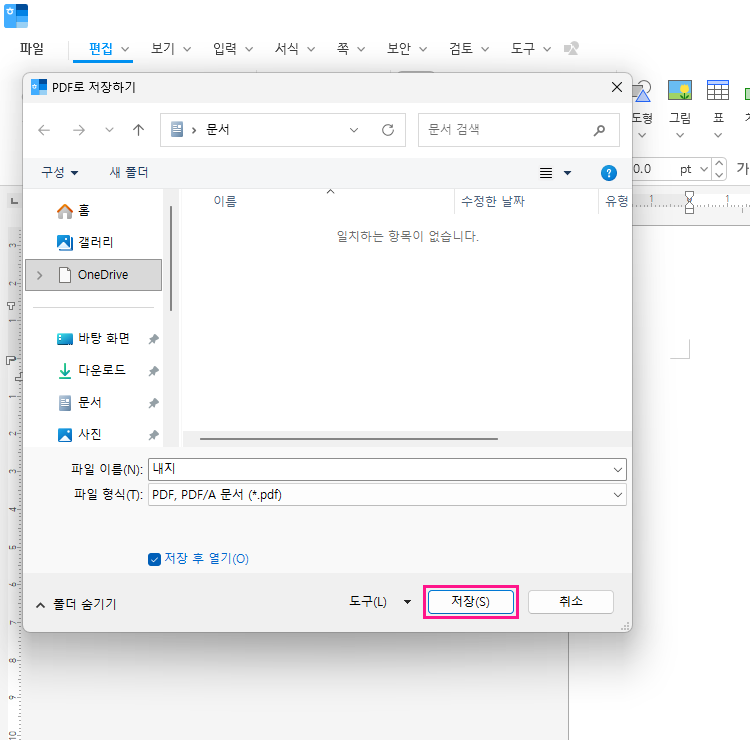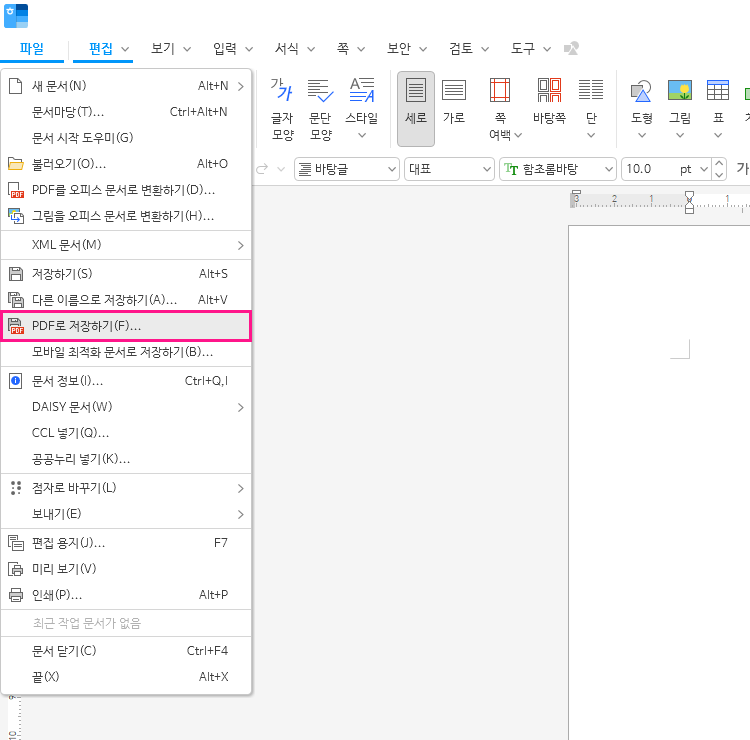 한글에서 PDF 만들기