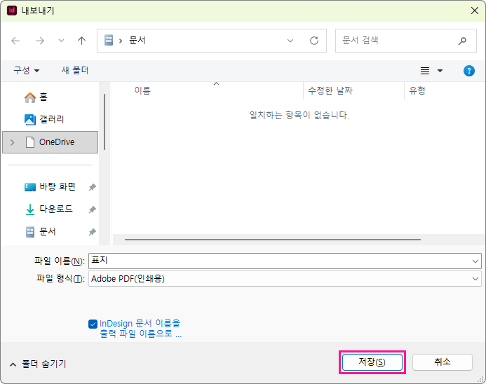 인디자인에서 PDF 만들기