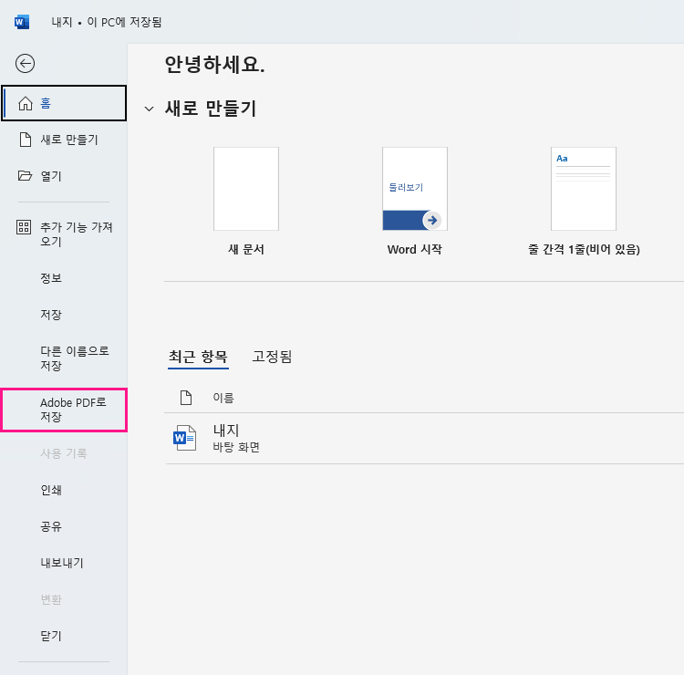 워드에서 PDF 만들기