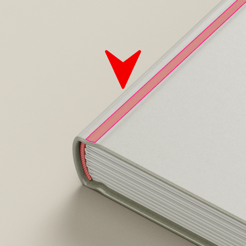 - 눌림 영역은 하드커버 제작 시 책 펼침을 유연하게 하기 위해 눌려지는 부분입니다.