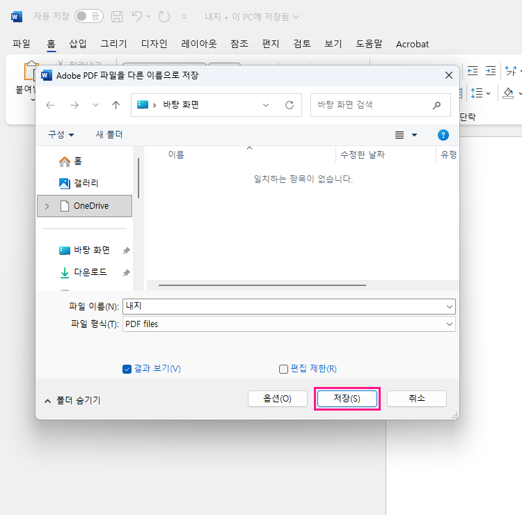 워드에서 PDF 만들기